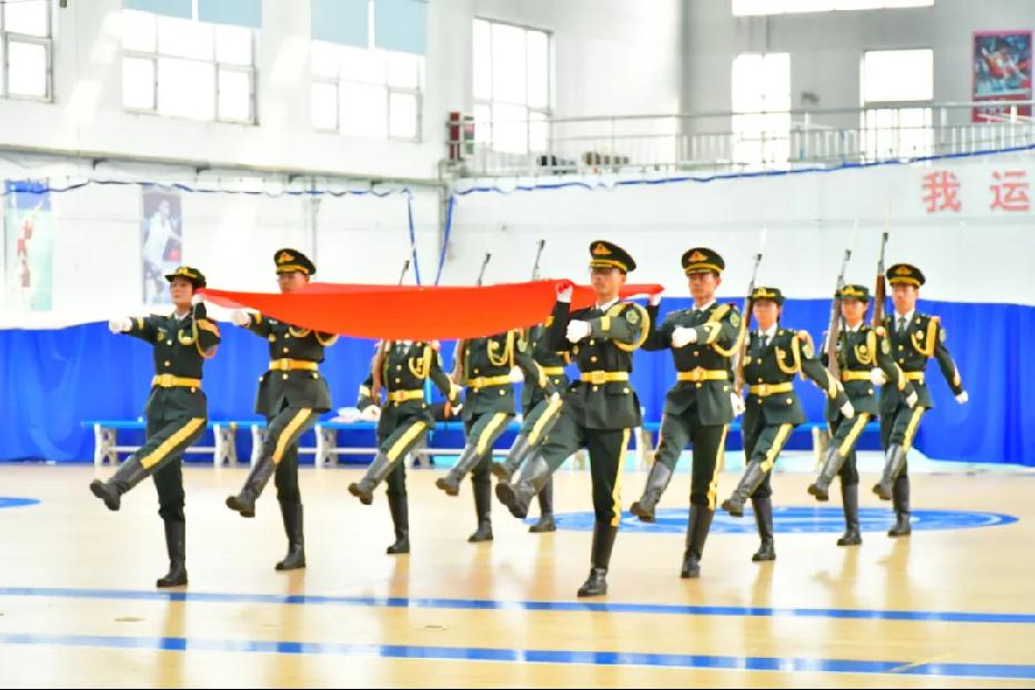本次“校企杯”篮球赛以“校企融合、联谊互动、共享体育”为活动主题,由陕西榆林能源集团有限公司、榆林市天丰昌医教科技有限公司和榆林学院共同主办,吸引了16支校企代表队参赛,旨在以体育为纽带,深化校企交流、凝聚协作力量。开幕式现场庄重而热烈,伴随着激昂的旋律,中华人民共和国国旗庄严入场,全体人员肃立并高唱国歌,爱国情怀与体育热情在场馆内迅速升腾。