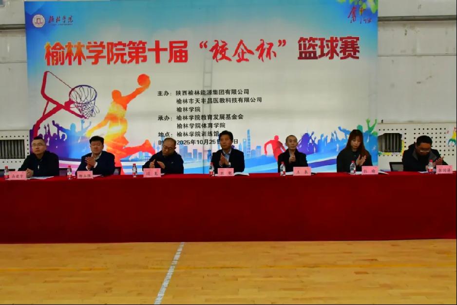 闫龙发表了开幕式致辞。他向现场嘉宾简要介绍了榆林学院的办学历史、目前的专业设置、学科建设、人才培养、社会评价等。他指出,学校与企业之间,始终保持着一种基于互利共赢原则的紧密合作伙伴关系。学校依托丰富的教育资源与科研实力,源源不断地为企业输送高素质的专业人才和创新性的研究成果,为企业的转型升级和持续发展注入不竭的动力;企业则通过提供宝贵的实践机会和慷慨的资金支持,回馈给学校更加贴近社会需求的教学改革、更加完善的教学和科研条件,助力我们培养出更多符合时代要求的一流应用型人才。他强调,举办篮球比赛是学校深化校企合作、推动协同发展的生动实践,希望通过此次活动,能够进一步加深学校与社会各界的交流与合作,实现交流与精彩同呈现,比赛与友谊双丰收,学校和企业共发展。