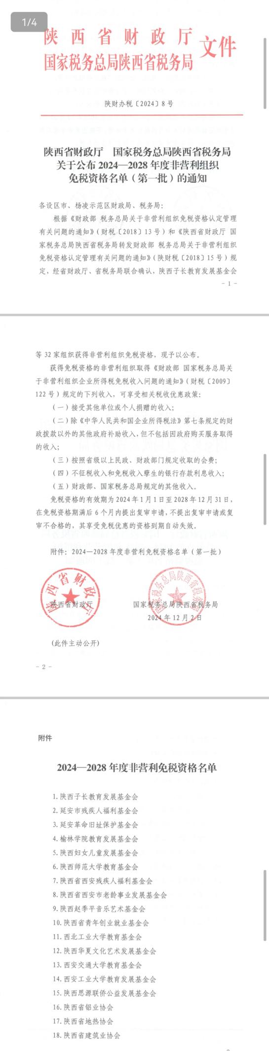 榆林学院教育发展基金会获2024-2028年度非营利组织免税资格