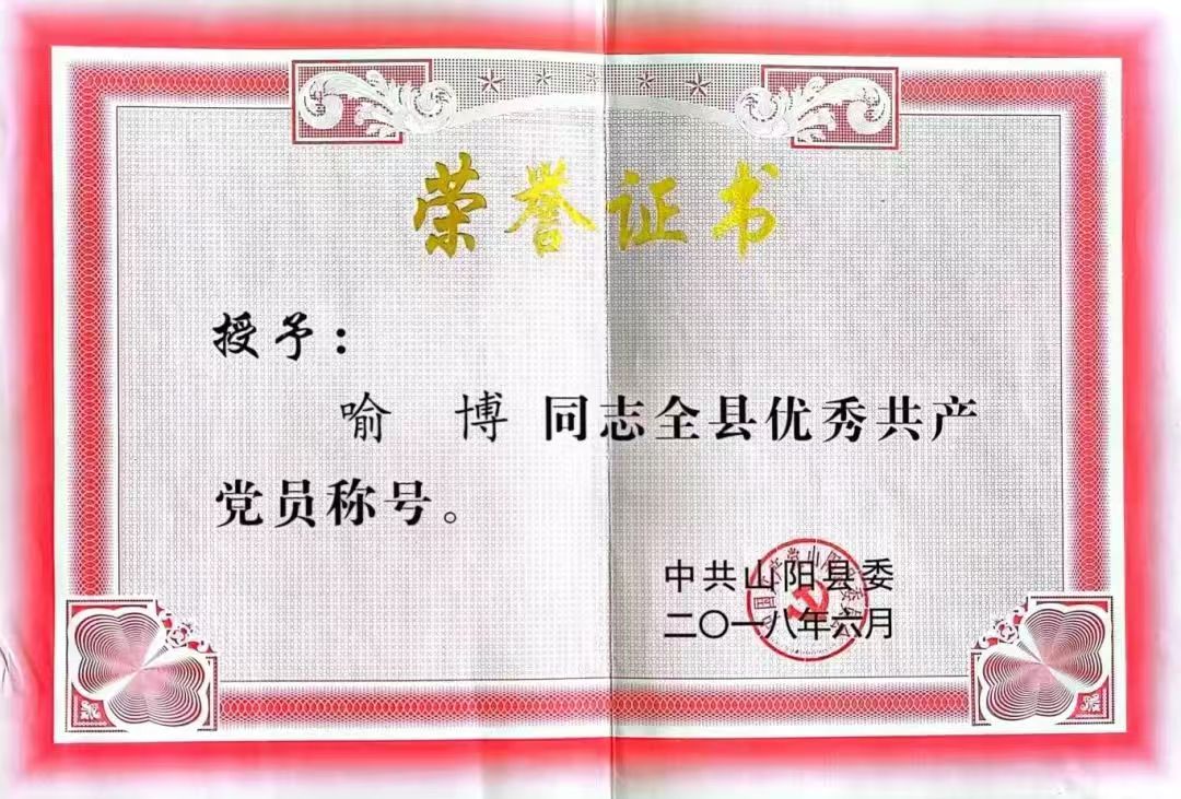 喻博,2005.09—2009.07就读于榆林学院动物科学专业。毕业后就回到家乡山阳县,先后在杨地镇畜牧兽医站、县动物卫生监督所、县畜牧兽医中心工作。现任山阳县畜牧兽医中心副主任,高级畜牧师职称,山阳县第十九次党代表大会代表。