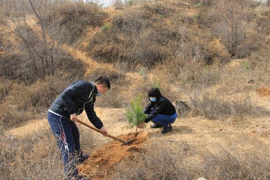 短暂的劳动很快就结束了,大家一致感觉累并快乐着,尤其看到原本荒凉的小沙丘在自己的劳动中换上了点点绿装,心中充满喜悦,也充满期待,期待榆林的草更绿、树更壮、天更蓝、景更美!